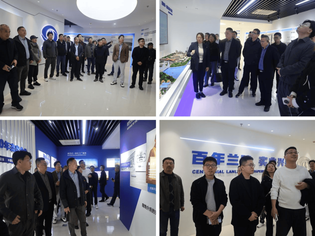 在讲解员的引导下,考察团系统参观了兰陵集团展览馆。馆内以企业发展为主线年来的历史脉络、参与人民大会堂及北京大兴机场等国家重大工程的典型案例,以及所获的制造业单项冠军等国家级荣誉。兰陵集团深厚的发展积淀与持续的工程实践,给浙江考察团留下了深刻印象。